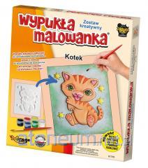 Wypukła Malowanka od Mirage Hobby to Zestaw Kreatywny do malowania dla osób powyżej 5. roku życia. Zestaw zawiera wypukły, plastikowy, kształtny obrazek 3D, farbki akrylowe, pędzelek oraz ramkę z kartonu do postawienia lub powieszenia. Zmyj obrazek przy użyciu ciepłej wody, mydła i szczoteczki, najpóźniej do 15 min. po pomalowaniu. Obrazek ma odpowiedni do wzoru wypukły kształt 3D, który jest dobrze odczuwalny w dotyku. Produkt jest wymyślony i wyprodukowany w Polsce! Wszelkie prawa zastrzeżone. Każda Wypukła Malowanka to konkretny wzór z danej serii. Kolekcja jest podzielona na różne serie np. Koty, Psy, Konie, Futrzaki, Dinozaury, Jednorożce, Kwiaty, Sport, Bajki, Zoo, Las, Taniec i inne. Seria Wypukła Malowanka Zestaw Kreatywny została nagrodzona Wyróżnieniem Zabawka Roku 2018.