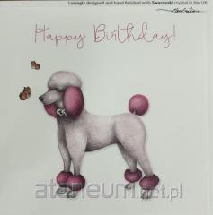 Karnet Swarovski kwadrat Urodziny Pudel