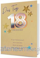 Karnet w powiększonym tzw. Angielskim formacie 140x190 mm. Wykonany z niezwykłą dbałością o szczegóły, zdobiony folią holograficzną i w całości pokryty folią matową dla podkreślenia efektu prostoty i elegancji. Wewnątrz znajduje się tekst życzeń, a całość uzupełnia dedykowana koperta.