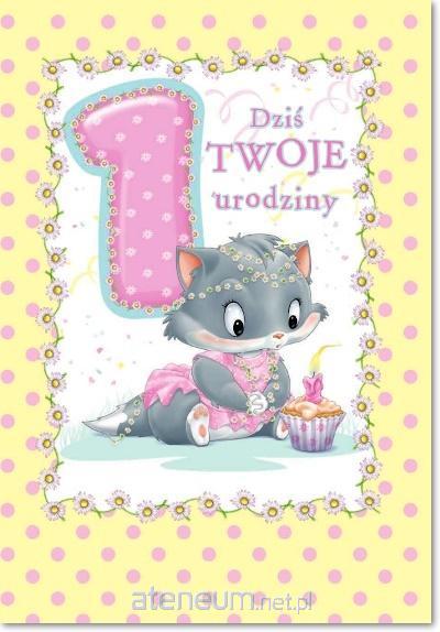 Karnet B6 brokat z kopertą Urodziny 1 dziewczynka