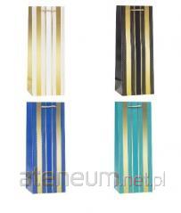Mix wzorów wysyłany losowo. Najwyższej jakości torby wykonane z grubego, satynowego papieru, zdobione złotą lub srebrną folią, matowe lub błyszczące (w zależności od wzoru) z uchwyt z atłasowej tasiemki. Szerokość: 33 cm, długość: 46,0 cm, głębokość: 13,0 cm