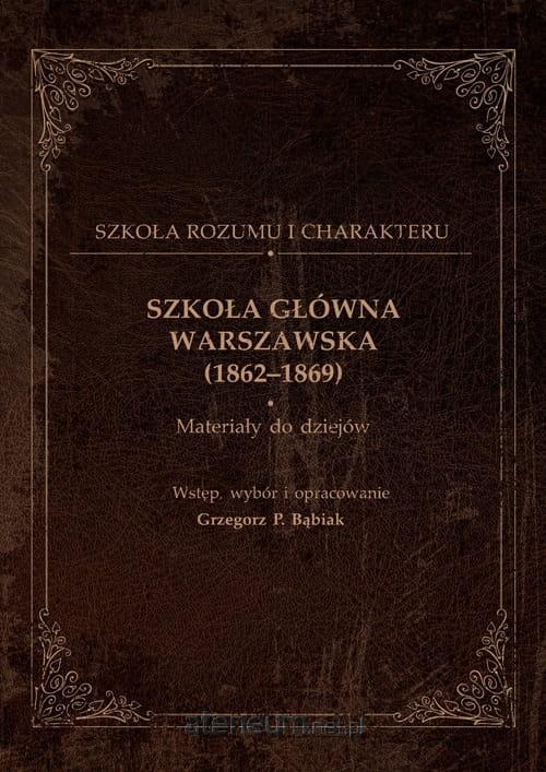 Tom materiałów do historii Szkoły Głównej Warszawskiej jest pierwszym, jaki podejmuje próbę całościowego zebrania najważniejszych źródeł do jej dziejów. Znalazły się w nim tak materiały dotąd niepublikowane, jak i wydane w epoce, a rozproszone w postaci druków ulotnych i artykułów prasowych. Całość uzupełnia bogaty materiał ikonograficzny, niekiedy publikowany po raz pierwszy, prezentujący ryciny z epoki, jak i dzisiejsze fotografie miejsc związanych ze szkołą, w tym także odnalezionych na cmentarzach różnych wyznań groby profesorów i uczniów Szkoły Głównej.