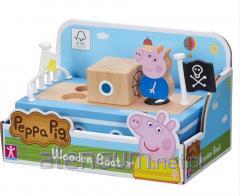 Peppa Pig - Drewniany autobus sorter Świnka Peppa Drewniany autobus szkolny Peppy zawiera 4 klocki o różnych kształtach, 4 obrazki do umieszczenia w oknie autobusu oraz drewnianą figurkę Rebecci Królika. Wykonane z przyjaznego dla środowiska drewna FSC.