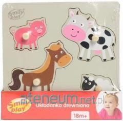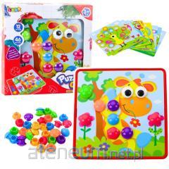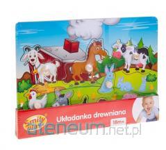 Układanka drewniana w drewnianym pudełku pozwala włożyć dużo misiów różnych wielkości. Bużki mają różne miny, pokazują swoje nastroje. Misie można układać w specjalnie wyprofilowanych miejscach na wieczku pudełka lub na zwyczajnym podłożu. Zabawka przedstawia 2 misie: dużego i małego. W zestawie znajdziemy misia mamę oraz dzieci .