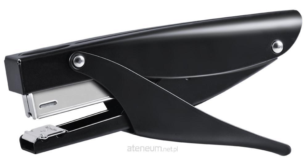 Zszywacz metalowy nożycowy, części mechaniczne metalowe. Zszywanie zamknięte i otwarte. Dostosowany do zszywek o rozmiarach 24/6 - 26/6 mm. Zszywa do 25 kartek. Głębokość wsuwania kartek: 45 mm. Pojemność magazynka:150 zszywek. Kolor: czarny. Opakowanie: pudełko