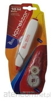 Korektor w taśmie o ergonomicznym, nowoczesnym kształcie. Ulepszony system korekcji umożliwia natychmiastowe pisanie każdym rodzajem długopisu. Nie pozostawia śladów i cieni na kserokopiach. Posiada automatycznie wysuwaną, ruchomą głowicę korygującą i plastikowy klip. Dodatkowo wyposażony w regulację naciągu taśmy. Specjalnie skonstruowana obudowa umożliwia kontrolę zużycia taśmy.