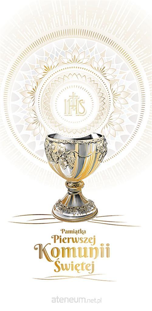 Karnet drewniany C6 Komunia kielich róż + koperta