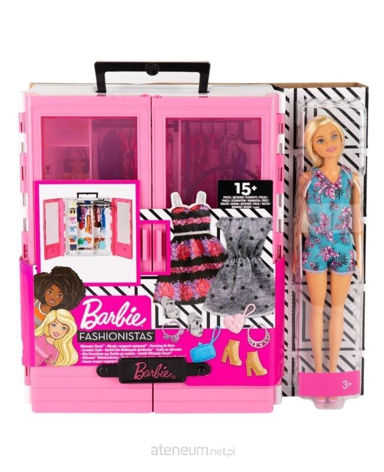 Wkrocz prosto do świata mody! Szafa na ubranka Barbie® ma wygodny uchwyt ułatwiający przenoszenie oraz dołączone stylowe ubranka i akcesoria. Zaprojektowana w charakterystycznym stylu Barbie® jasnoróżowa garderoba posiada podwójne przezroczyste drzwi, które pozwalają zerknąć do środka. W zestawie z szafą znajdują się lalka Barbie® ubrana w kwiatowy kombinezon i buty oraz dodatkowe modne ubrania i akcesoria, które można łączyć, aby tworzyć różnorodne stylizacje. Dopasuj strój Barbie® do dowolnej okazji lub historyjki. Sześć dołączonych wieszaków pomaga zachować porządek, a liczne półki to doskonałe miejsce do przechowywania akcesoriów. Wyciągany duży okrągły wieszak uatrakcyjnia zabawę w przebieranki. Dzięki wygodnemu uchwytowi można zabierać przenośną szafę w dowolne miejsce.