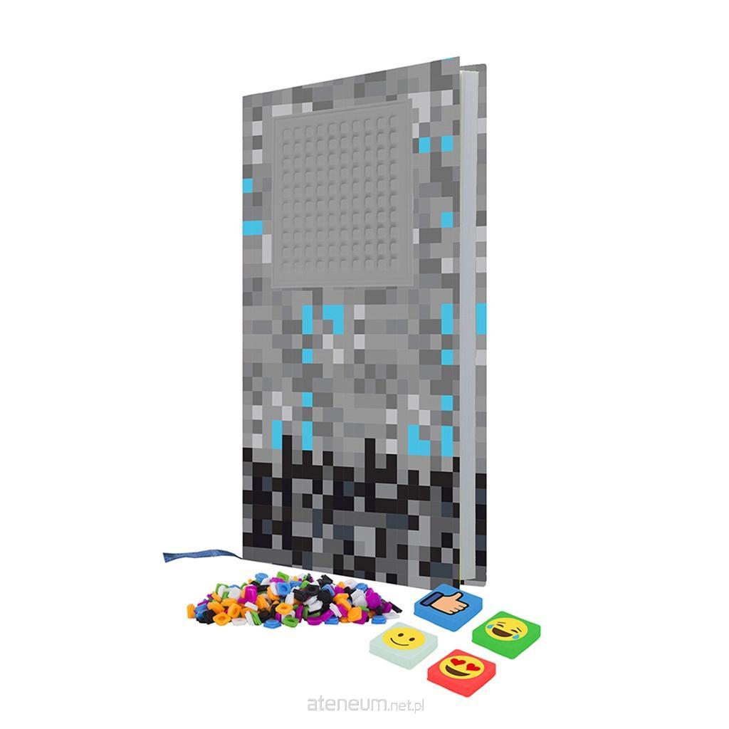 Praktyczny zeszyt PIXIE CREW, w rozmiarze A5, zawiera 80 kartek w linie (160 stron), na których możesz zapisywać swoje wspaniałe pomysły. Zeszyt ma okładkę z błyszczącego, twardego kartonu, z motywem szaro - niebieskiej kratki, nawiązującej do popularnej, znanej na całym świecie gry komputerowej. Na przedniej stronie znajduje się wyjątkowy, kreatywny, silikonowy panel PIXIE CREW TM, w kolorze szarym, dający nieskrępowaną możliwość tworzenia oryginalnych własnych grafik i napisów. Panel wyposażony jest w niewielkie występy w kształcie litery "T", do których możemy mocować małe płytki - piksele oraz multipixele z obrazkami. Wielkość panelu: 10 x 10 punktów, pozwala na ułożenie wzorów ze 100 pikseli. Do każdego zeszytu dołączamy paczkę około 69 małych pikseli.