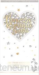 Każda kartka w kolekcji Passion Moments to małe arcydzieło - wyjątkowe i niepowtarzalne, świetne w dotyku, piękne wizualnie, po prostu niepowtarzalne. Kartki PM są bardzo bogato zdobione, a jednocześnie skromne i stylowe, cały efekt tkwi w detalach i doskonałym wykonaniu. W zależności od wzoru, na kartkach znajdują się dekoracje ze złotej, srebrnej, perłowej lub holograficznej folii, a także doklejki biżuteryjne, kokardki, brokat, laserowe wycięcia, wstążeczki i inne dodatki. Wnętrze karnetu do zawsze atrakcyjna grafika i tekst życzeń. Kartki mają w komplecie dopasowaną kopertę. Cechy szczególne: zdobienie: przynajmniej dwie folie (metaliczne/perłowe/holograficzne), brokat, elementy doklejane, wycięcia laserowe, wstążeczki - w zależności od wzoru, wnętrze: kolorowe, z delikatną grafiką, wyjątkowe życzenia w środku, w komplecie: dopasowana kolorystycznie koperta, okazja: komunia.