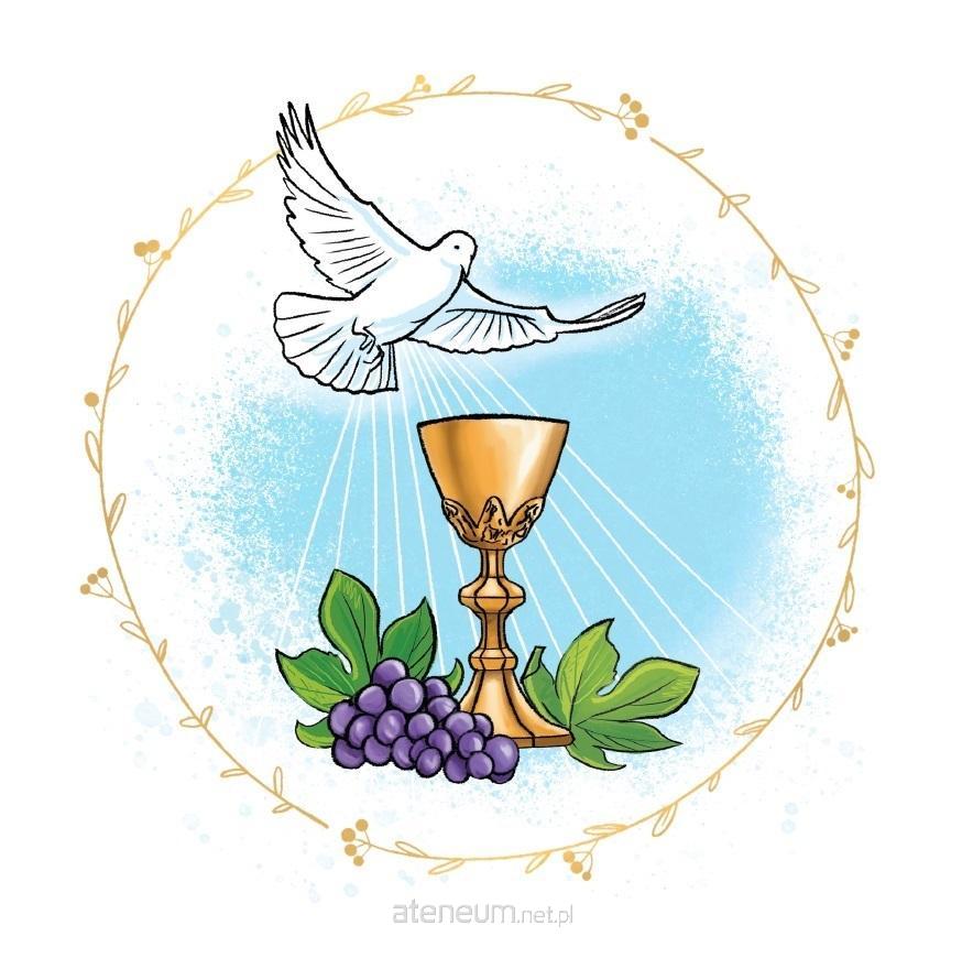 Kartka okolicznościowa z okazji Pierwszej Komunii Świętej zaprojektowana przez Aleksandrę Makowską.