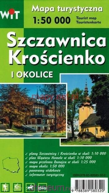 Na odwrocie umieszczono plan Szczawnicy i Krościenka w skali 1:10 000, mapkę Wąwozu Homole 1:10 000 oraz Pienińskiego Przełomu Dunajca w skali 1:25 000. W dole umieszczono panoramę widokową z Trzech Koron, nad którą znajdują się atrakcyjne zdjęcia okolic oraz krótka charakterystyka regionu i baza noclegowa.