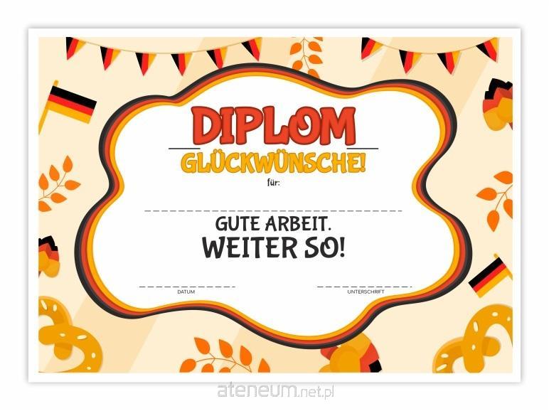 Dyplom językowy idealnie sprawdzi się jako pamiątka oraz nagroda za postępy i ciężką pracę w nauce języka niemieckiego.