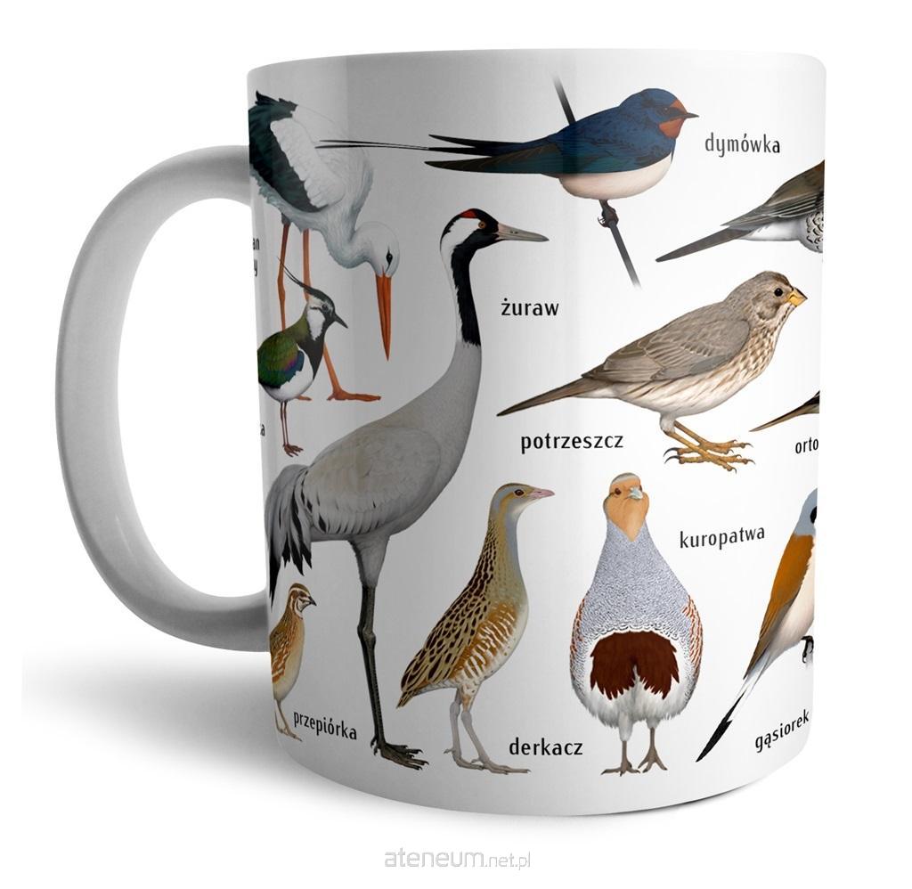 Na kubku znajdziesz wizerunek żurawia i innych ptaków żyjących na ternach wiejskich: bociana białego, czajki, przepiórki, dymówki, potrzeszcza, derkacza, kuropatwy, ortolana, kwiczoła, gąsiorka, mazurka, wróbla, pliszki żółtej, pokląskwy, szpaka, skowronka, makolągwy, trznadla.
