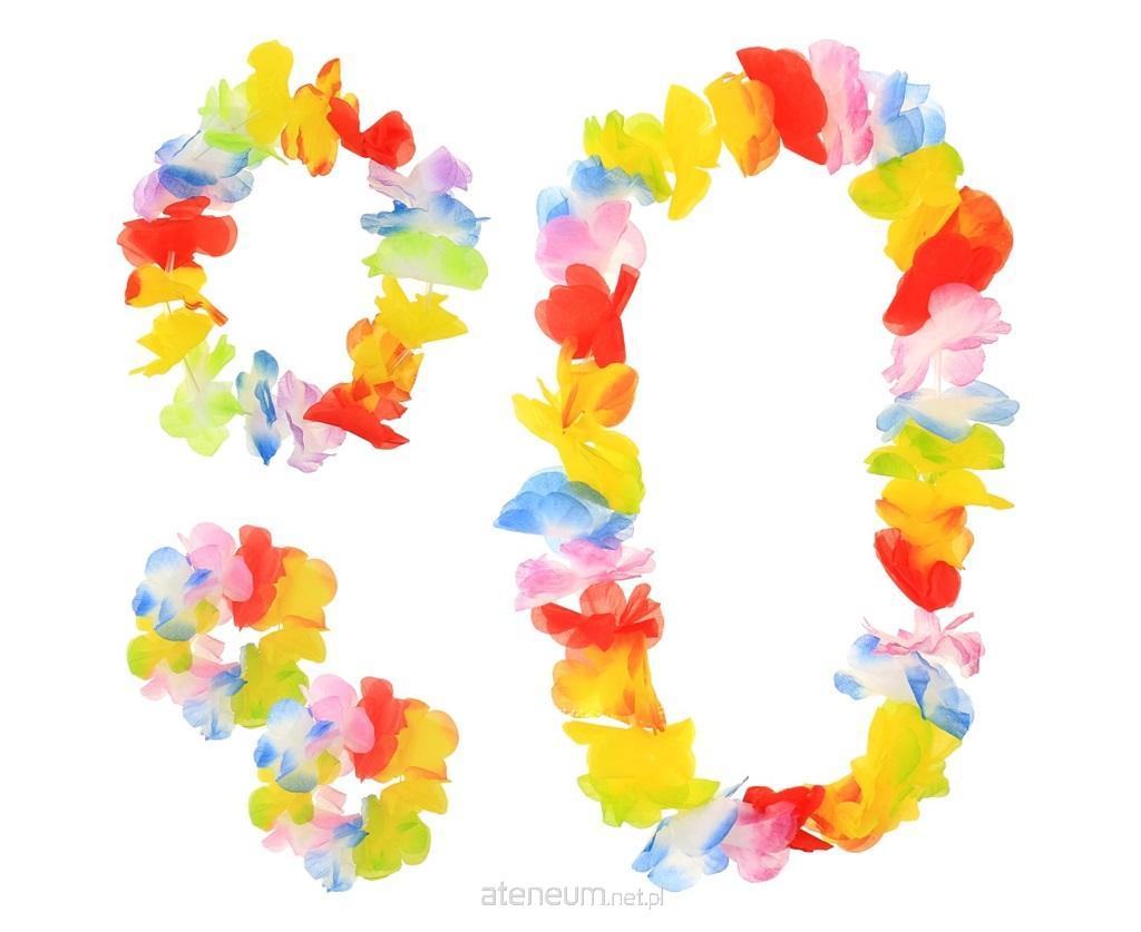 Zestaw hawajski promienisty (naszyjnik, wianek, dwie bransoletki) W skład zestawu wchodzą: Naszyjnik, wianek i dwie bransoletki Kolor: Wielokolorowy