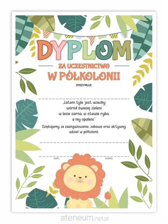 Dyplom jest idealnym dodatkiem, który umili, a także wzbogaci zakończenie półkolonii oraz wakacji.