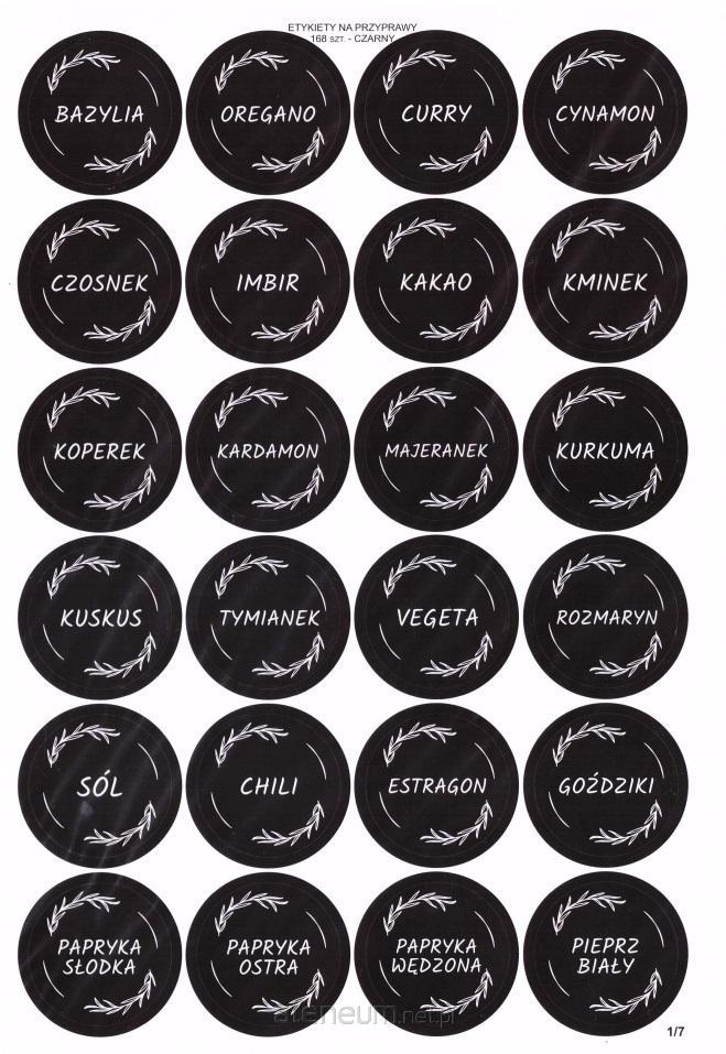 Zestaw naklejek funkcyjnych na słoiki lub inne pojemniki z przyprawami, średnica 40mm. kolor czarny