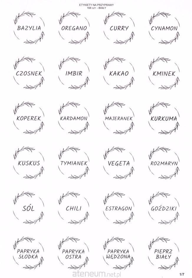 Zestaw naklejek funkcyjnych na słoiki lub inne pojemniki z przyprawami, średnica 40mm. kolor białe