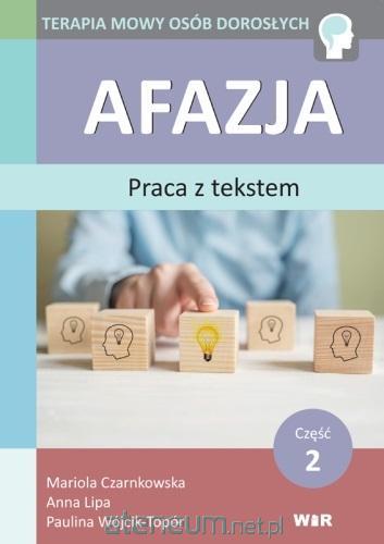 Afazja. Praca z tekstem to ćwiczenia przeznaczone dla osób dorosłych, które utraciły zdolność rozumienia i posługiwania się językiem na skutek uszkodzenia mózgu. Pomoc polecana jest do terapii osób z trudnościami w zakresie funkcji poznawczych, z afazją, otępieniem, chorobą Alzheimera.
