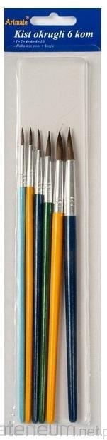 zestaw 6 okrągłych pędzli, rozmiar 1, 2, 4, 6, 8, 10, włos naturalny, drewniana rączka, metalowe okucia