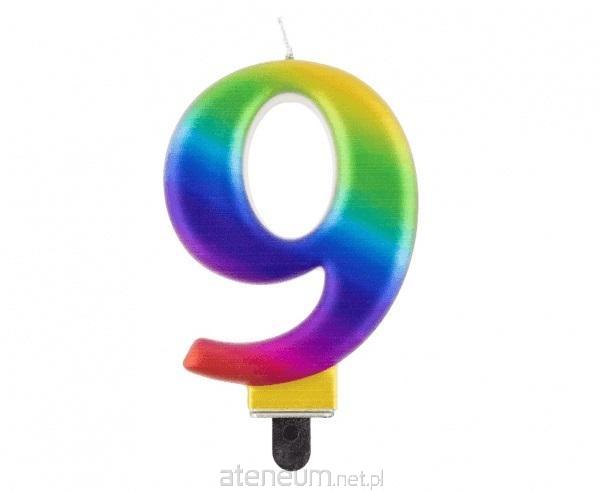 Świeczka cyfra 9 urodziny, złoty kontur