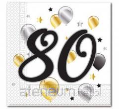" SERWETKI ""BALLOONS - 40"" Wymiary: 33 x 33 cm Ilość sztuk w opakowaniu: 20 Materiał: papier Serwetki papierowe w kolorze białym z nadrukiem liczby ""40"" w kolorze czarnym oraz złote i srebrne baloniki i gwiazdki. "