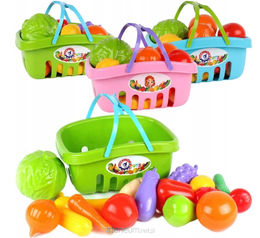 Zestaw zabawkowy w koszyczku- owoce i warzywa. W zestawie 17 jasnych elementów. Wszystkie są wysokiej jakości, bezpieczne, trwałe.