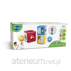 Zestaw składa się z drewnianej podstawki, w której znajdują się klocki w różnych rozmiarach i kształtach, podobiznach zwierząt oraz 2 wystających pałąków. Dwa koła zębate na dole mogą wprawiać w ruch wyżej ułożone klocki. Spróbuj połączyć i ułożyć dwa zwierzątka: panda i sówkę. Maluch może poćwiczyć zdolności manualne i precyzje wkładając na pałąki różnego kształtu małe drewniane klocki.