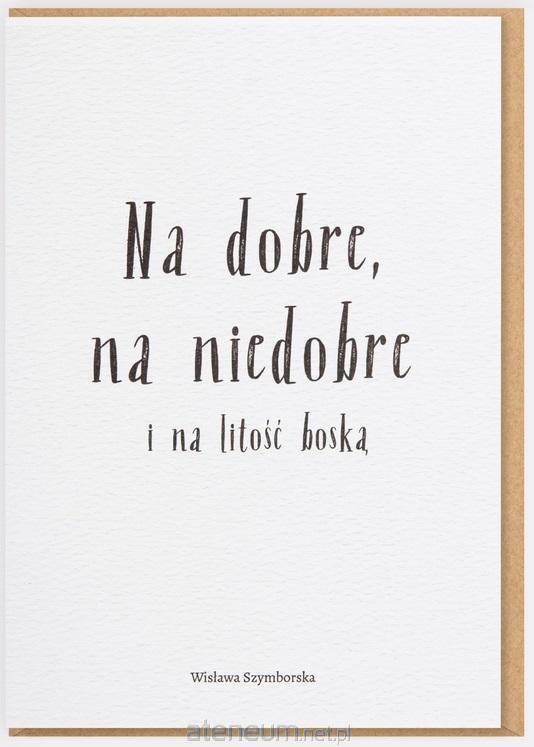 NA DOBRE, NA NIEDOBRE I NA LITOŚĆ BOSKĄ to kartka okolicznościowa inspirowana jednym z najbardziej znanych, a zarazem najpiękniejszych wierszy Wisławy Szymborskiej. Uniwersalny, minimalistyczny wzór sprawdzi się jako dodatek do prezentu ślubnego, kartka z okazji jubileuszu ślubu i walentynka. Doceni ją każdy miłośnik literatury polskiej, zwłaszcza poezji noblistki!