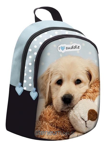 Dwukomorowy, na boku posiada kieszonkę z elastycznej siatki. Na froncie plecaka oraz na szelkach znajdują się elementy odblaskowe. Całość wykonana z poliestru. Wewnątrz plecaka kolorowa grafika. Dodatkowo zamki zakończone są ozdobnymi zawieszkami.