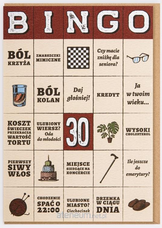 Kartka BINGO to nieszablonowy dodatek do prezentu na trzydzieste urodziny. No cóż, w takich okolicznościach tylko dystans nas uratuje... Kartka w zestawie z elegancką kopertą została wydrukowana na papierze ekologicznym i jest pusta w środku - jej wnętrze czeka na wypełnienie treścią płynącą prosto z Twojego serca.