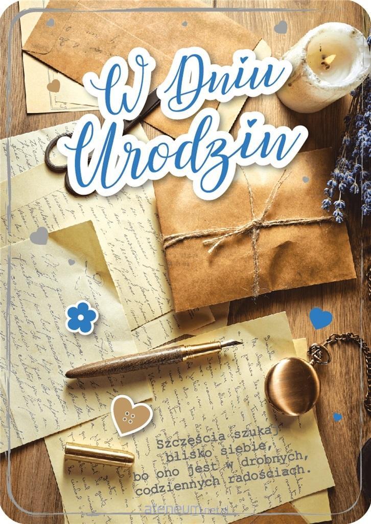 Karnet okolicznościowy z kopertą i życzeniami w środku.