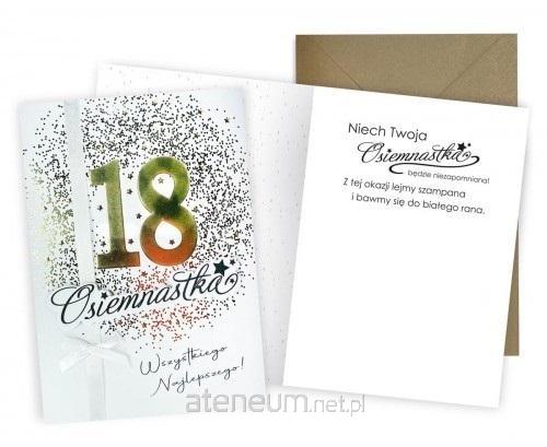 Karnet Dream Cards Plus "Urodziny 18" w powiększonym tzw. Angielskim formacie 140x190 mm. Kartka z ozdobnej serii Dream Cards Plus robi wrażenie dzięki atrakcyjnej kolorystyce i ciekawym zdobieniom. To idealny wybór łączący przyjazną cenę z jakością. Cechy szczególne: wielkość: 145 x 195 cm po złożeniu kopertą, wnętrze: kolorowe, wyjątkowe życzenia w środku, w komplecie: dopasowana kolorystycznie koperta. zdobienia: różnorodne, bogate (w zależności od wzoru: przyklejane dekoracje, elementy biżuteryjne, odstawniki, brokat, metaliczne folie, tłoczenia itp.), okazja: Osiemnastka