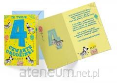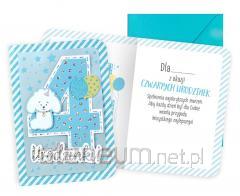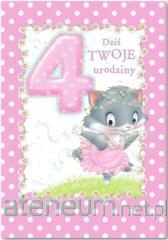 Karnet Dream Cards Plus "Urodziny 4" DKP-038 w powiększonym tzw. Angielskim formacie 140x190 mm. Kartka z ozdobnej serii Dream Cards Plus na czwarte urodziny robi wrażenie dzięki atrakcyjnej kolorystyce i ciekawym zdobieniom. To idealny wybór łączący przyjazną cenę z jakością. Cechy szczególne: wielkość: 145 x 195 cm po złożeniu kopertą, wnętrze: kolorowe, wyjątkowe życzenia w środku, w komplecie: dopasowana kolorystycznie koperta. zdobienia: różnorodne, bogate (w zależności od wzoru: przyklejane dekoracje, elementy biżuteryjne, odstawniki, brokat, metaliczne folie, tłoczenia itp.), okazja: urodziny, 4 urodziny