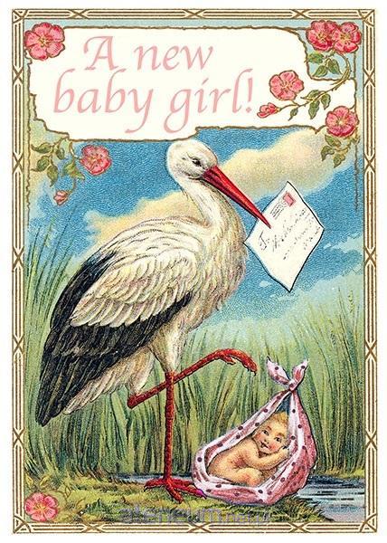 WT020 Karnet B6 z kopertą Narodziny Bocian dziewczynka, wyprodukowany w Wielkiej Brytanii.
