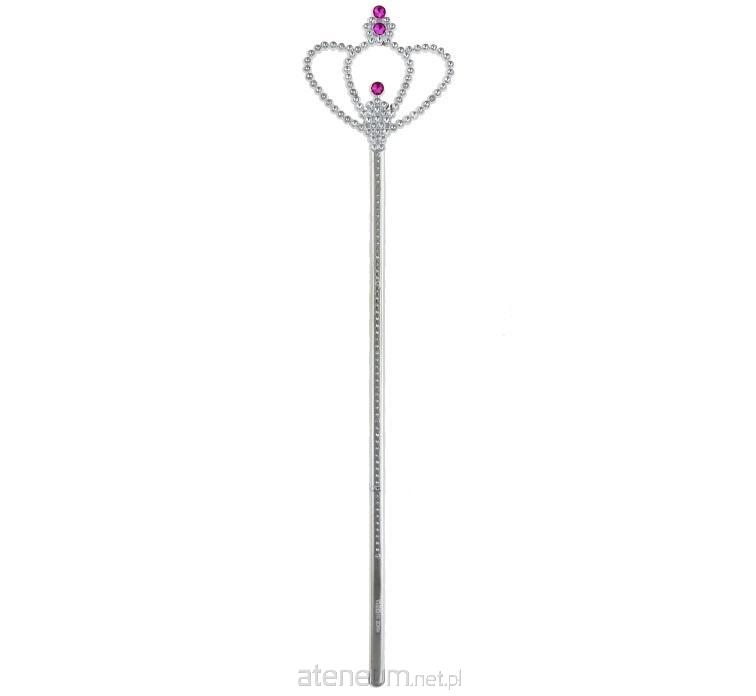 Różdżka, 34 cm Różdżka w kształcie berła wykonana z białych i srebrnych koralików. Górna część zdobiona różowymi cyrkoniami. Długość: 34 cm.