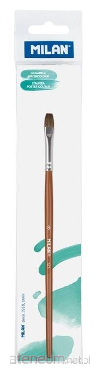 Szkolny płaski pędzel serii 121 nr 8 z krótkim drewnianym trzonkiem. Skład: 70% naturalnego włosia koziego + 30% syntetyczne. Brązowe lakierowane wykończenie i aluminiowa skuwka bez spawania, odporna na rdzewienie. Bardzo miękkie włosie idealne do technik akwarelowych, wodnych i plakatowych. Lepsze zatrzymanie wody i farby. Gładsza linia. Lepsza odporność i elastyczność, co ułatwia odzyskanie kształtu po jego użyciu. Szerokość włosia: 8,1 mm. Grubość włosia: 3,1 mm. Długość włosia: 11,1 mm. Długość pędzla: 182 mm.