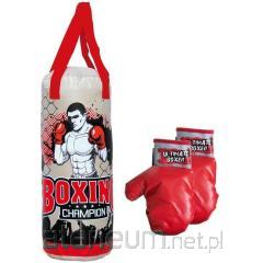 Zestaw treningowy do boksowania składa się z worka bokserskiego i dwóch rękawic. Zestaw utrzymany jest w kolorystyce biało-czerwono- niebieskiej. Zabawka jest uniwersalna, sprawdzi się zarówno dla dziewczynek, jak i chłopców. Posiada dwa uchwyty do zawieszenia worka. Rękawice są zapinane na rzep, dzięki temu są łatwe do samodzielnego zakładania i zdejmowania oraz nie zsuwają się z rąk.