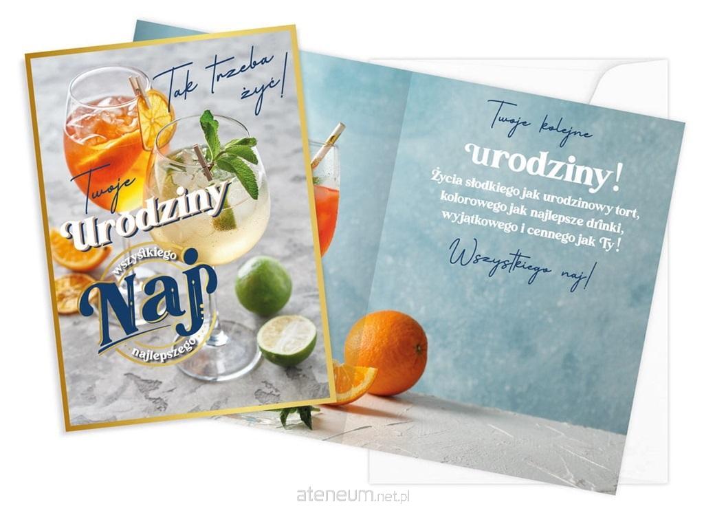 Karnet Vision w powiększonym tzw. Angielskim formacie 140x190 mm. Wykonany z niezwykłą dbałością o szczegóły, zdobiony złotą, matową folią. Wewnątrz znajduje się tekst życzeń, a całość uzupełnia dopasowana kolorystycznie koperta. okazja: Urodziny