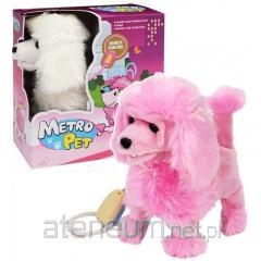 Pies pudel chodzący na smyczy MIX