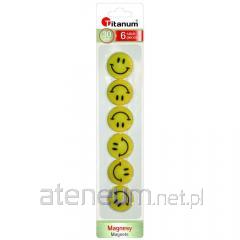 Magnesy do tablic suchościeralnych z nadrukiem uśmiechniętych buziek. Średnica magnesu: 30 mm. Pakowane po 6 szt. na blistrze.