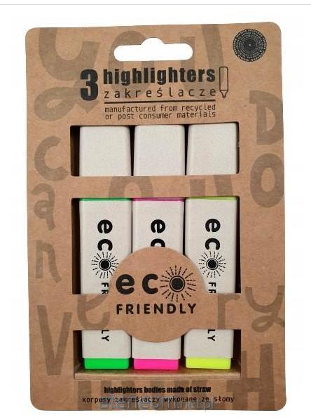 ECO zakreślacze 3 kolory; żółty, różowy, zielony, korpusy wykonane ze słomy