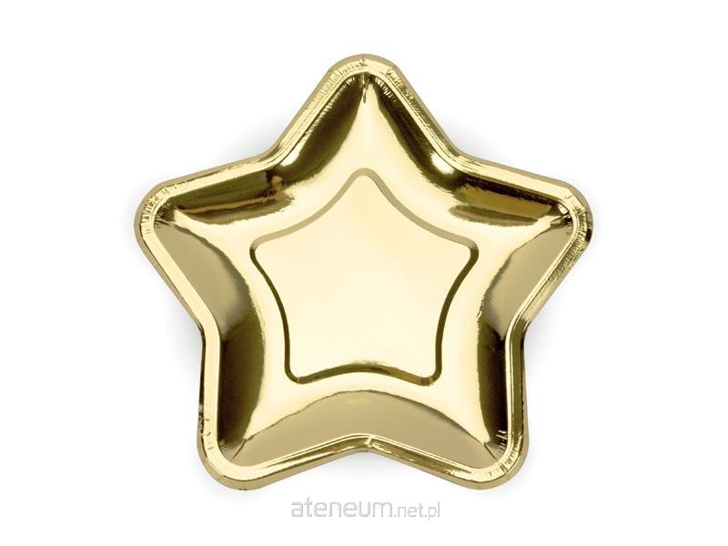 "Talerzyki Gwiazdka wykonane z papieru metalizowanego w kolorze złotym, średnica ok. 23 cm. (1 op. / 6 szt.)"