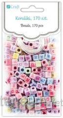 Koraliki literki kolorowe na białej bazie 40g