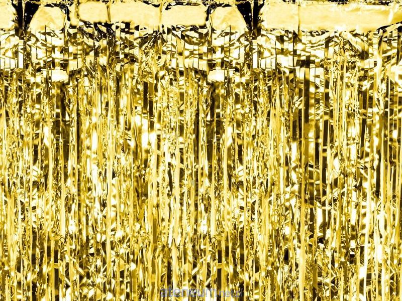 Kurtyna Party w kolorze złotym, szerokość około 90 centymetrów, wysokość około 250 centymetrów.