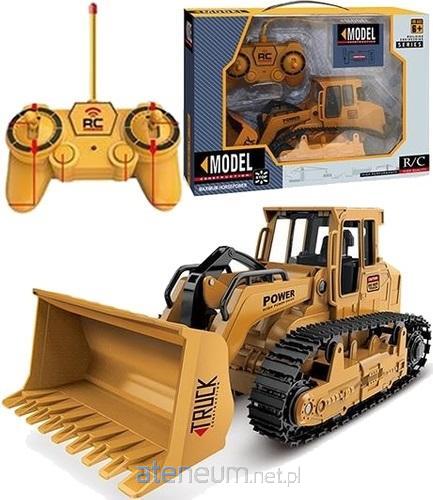 Buldożer zdalnie sterowany. Funkcje: pełen zakres jazdy, dwa kolory światła, ruchoma łyżka buldożera, dźwięk pracy.