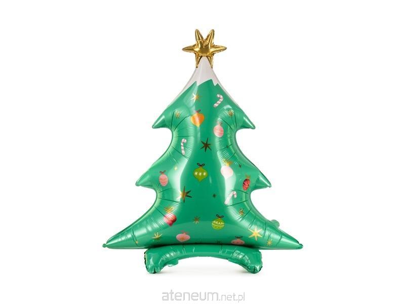 Matowy stojący balon foliowy Choinka z kolorowym i satynowym złotym nadrukiem, wymiary ok. 78 x 94 cm (30.5 x 37 '').
