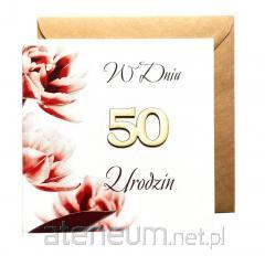 Kartka okolicznościowa z okazji urodzin o treści: Niech ten radosny dzień na zawsze Twe troski odsunie w cień i niech się śmieje do Ciebie świat, blaskiem szczęśliwych i długich lat! Wszystkiego najlepszego!