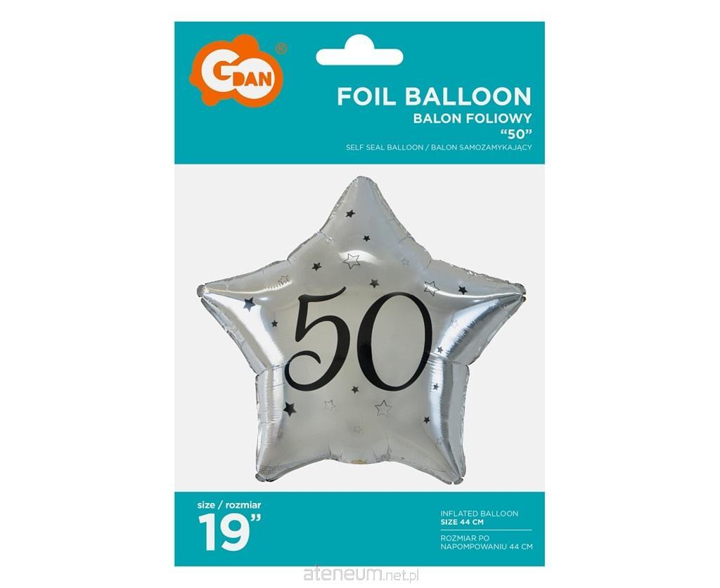 Balon foliowy Liczba 50 gwiazda srebrna, nadruk czarny, 19 cali