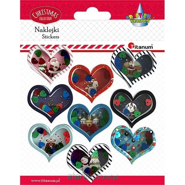 Naklejki 3D serca 40x35mm z zimowymi widoczkami i cekinami 9szt.